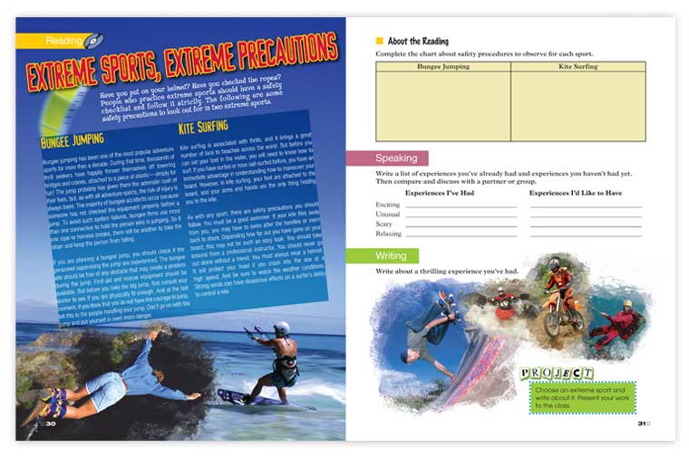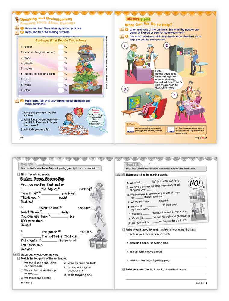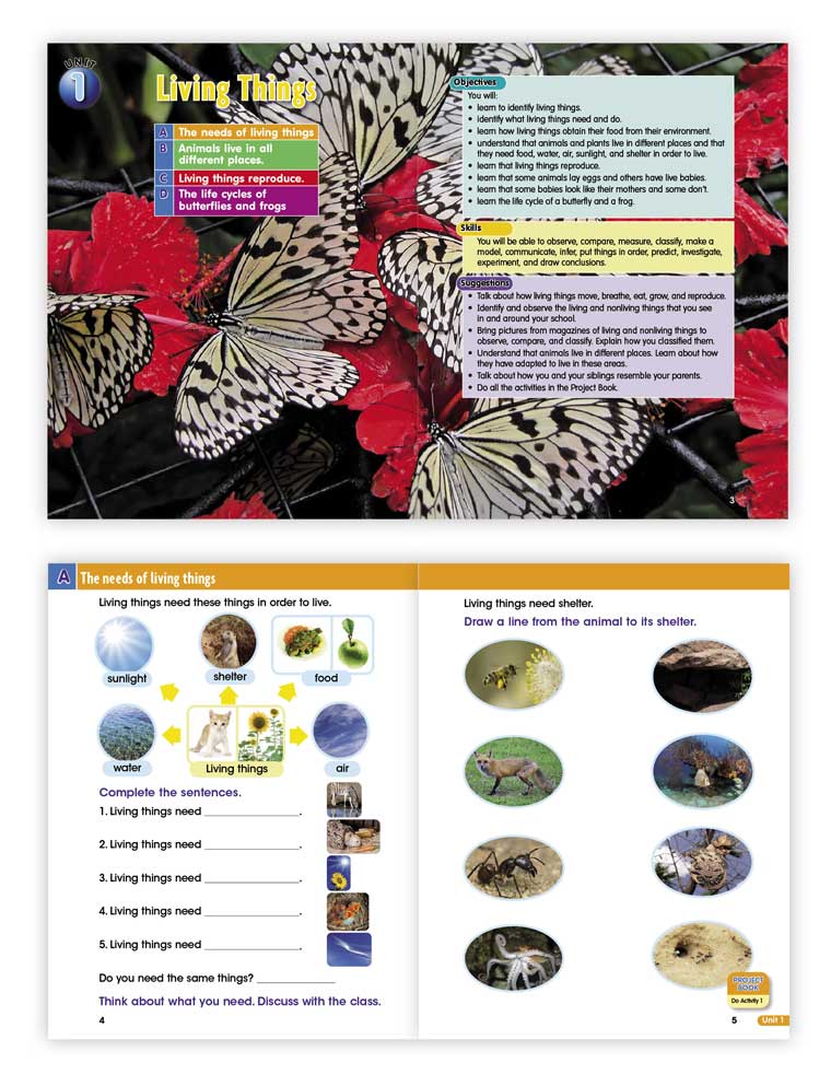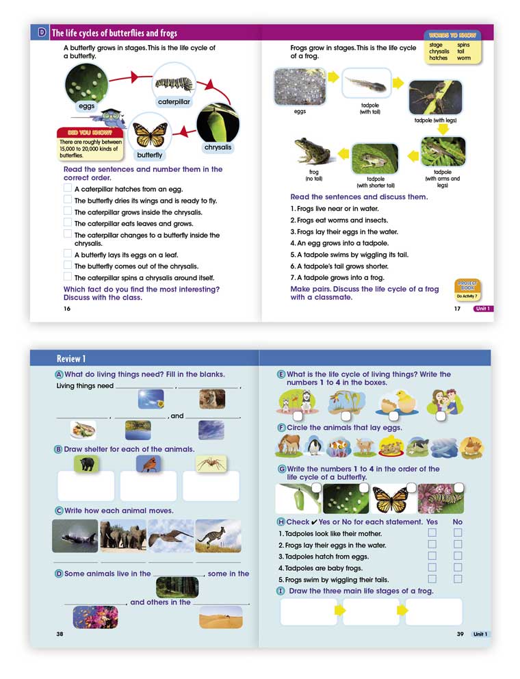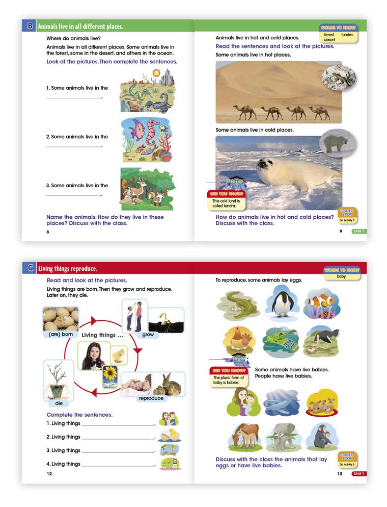 of colour to denote each four page section per topic within units. Bled pics on the unit opening pages,
