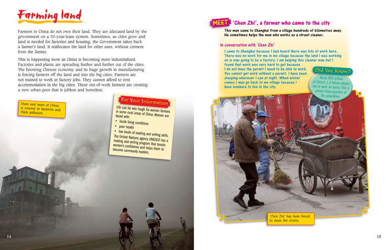 first-person accounts of daily life, information boxes, and a spread for each title outlining the