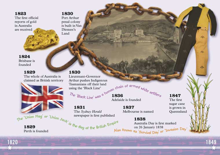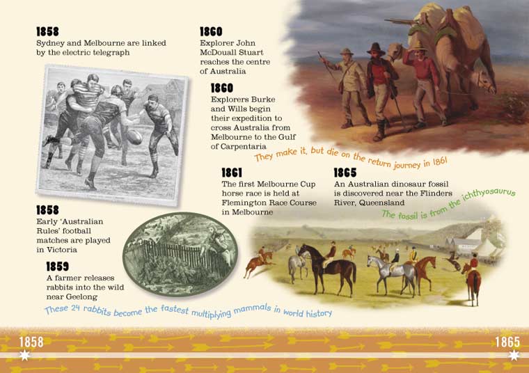 my illustrations and photographs to fill gaps, and the time-line design creates impetus, showing the