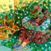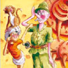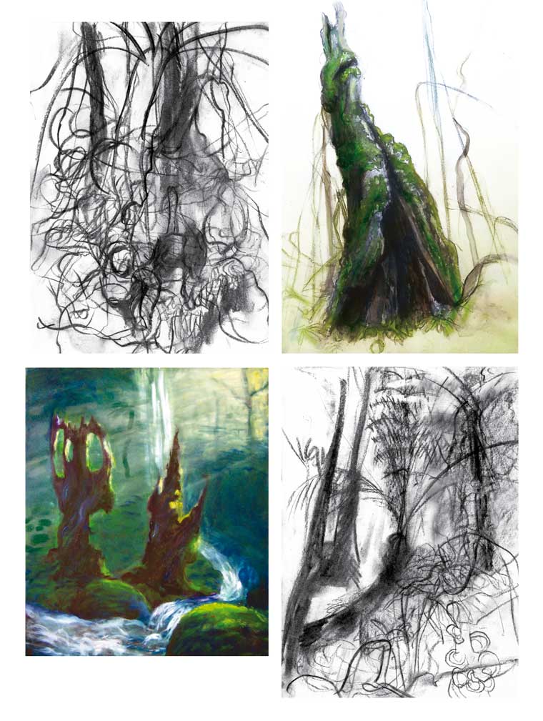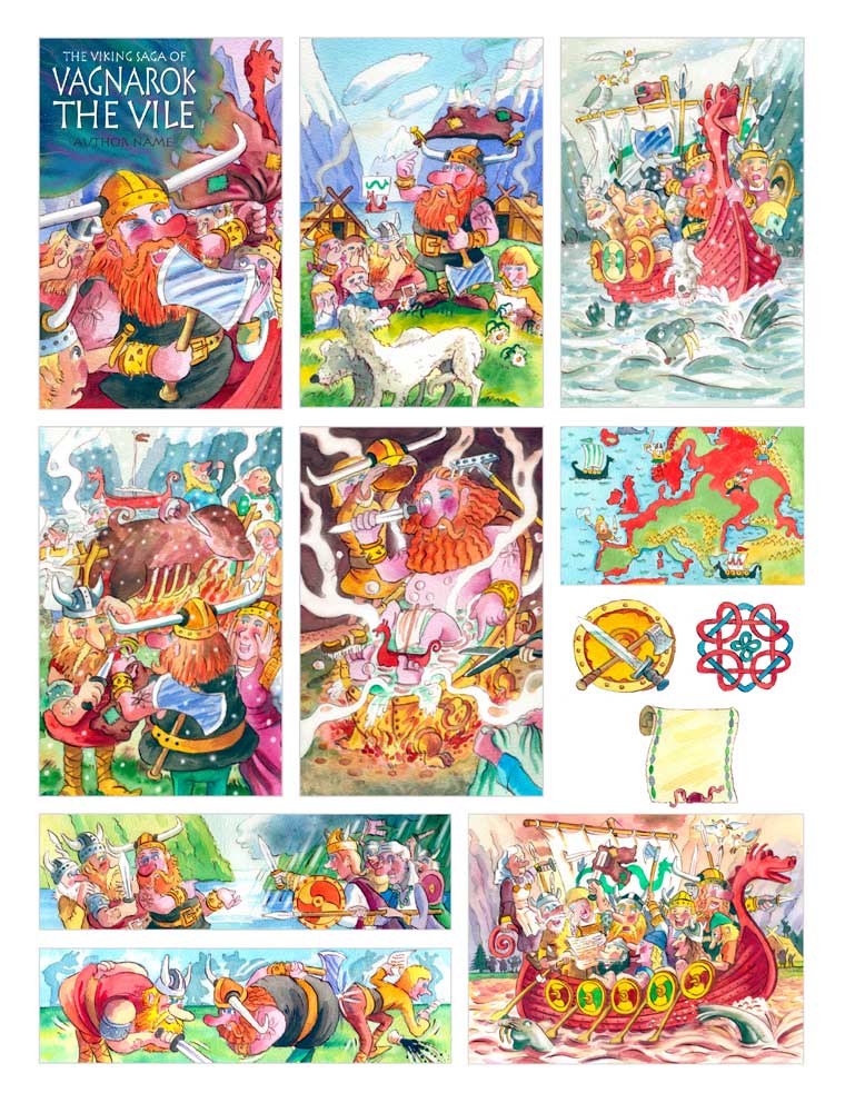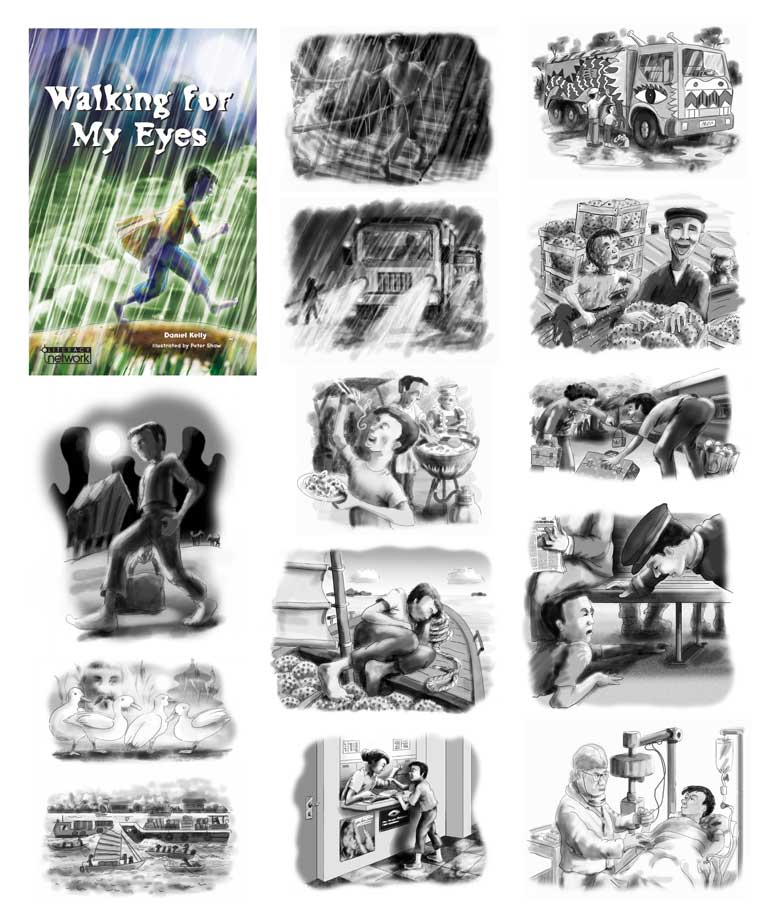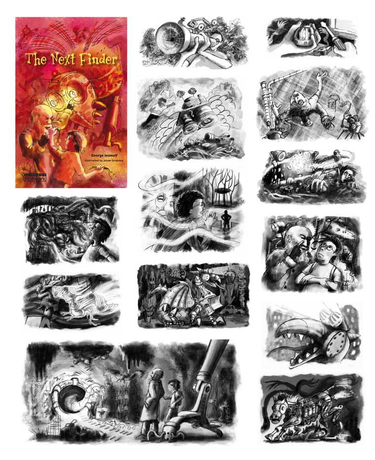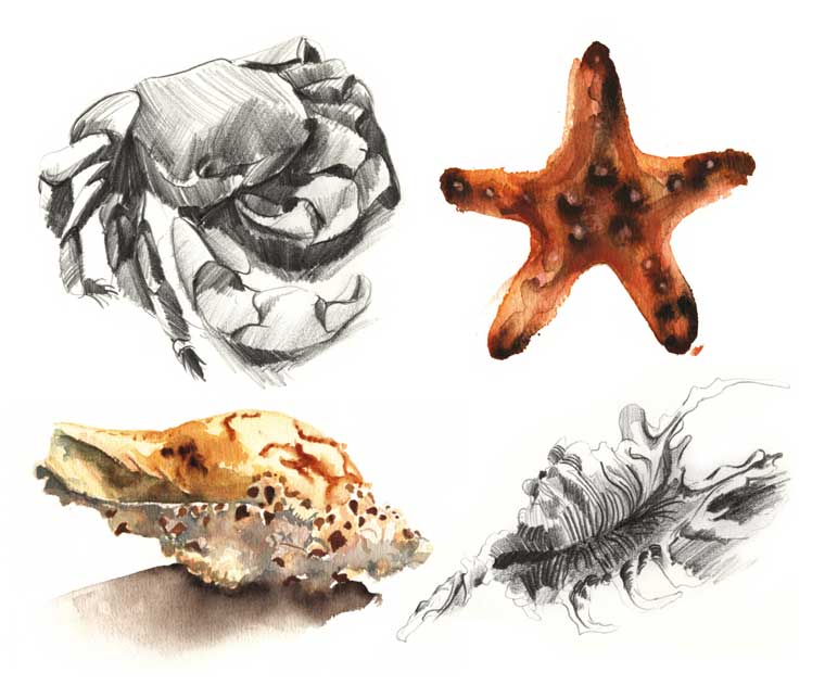 all sorts of media to make my pictures: electronic, water-colour, other paints, coloured pencil, pastel, charcoal, pen, brush and ink, and